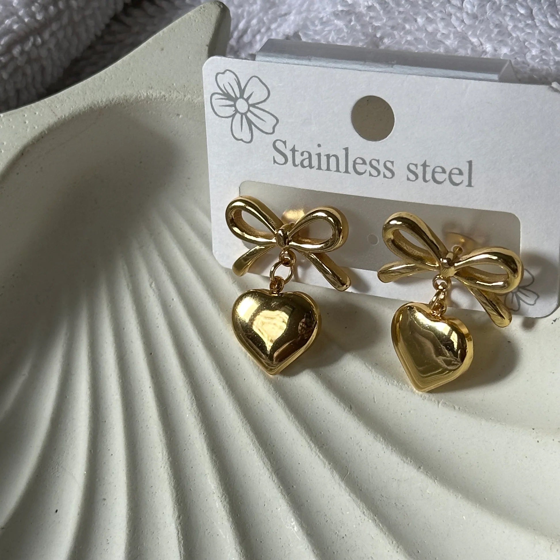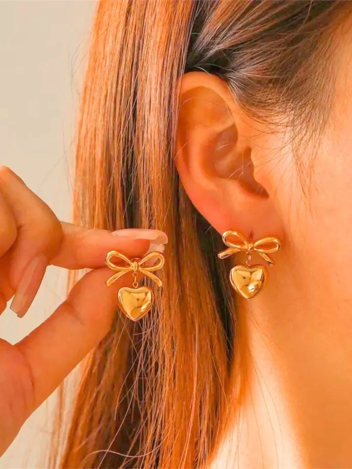 Anti tarnish 18K Gold-plated bow hearted earrings for women