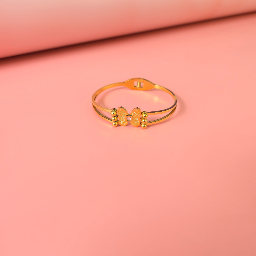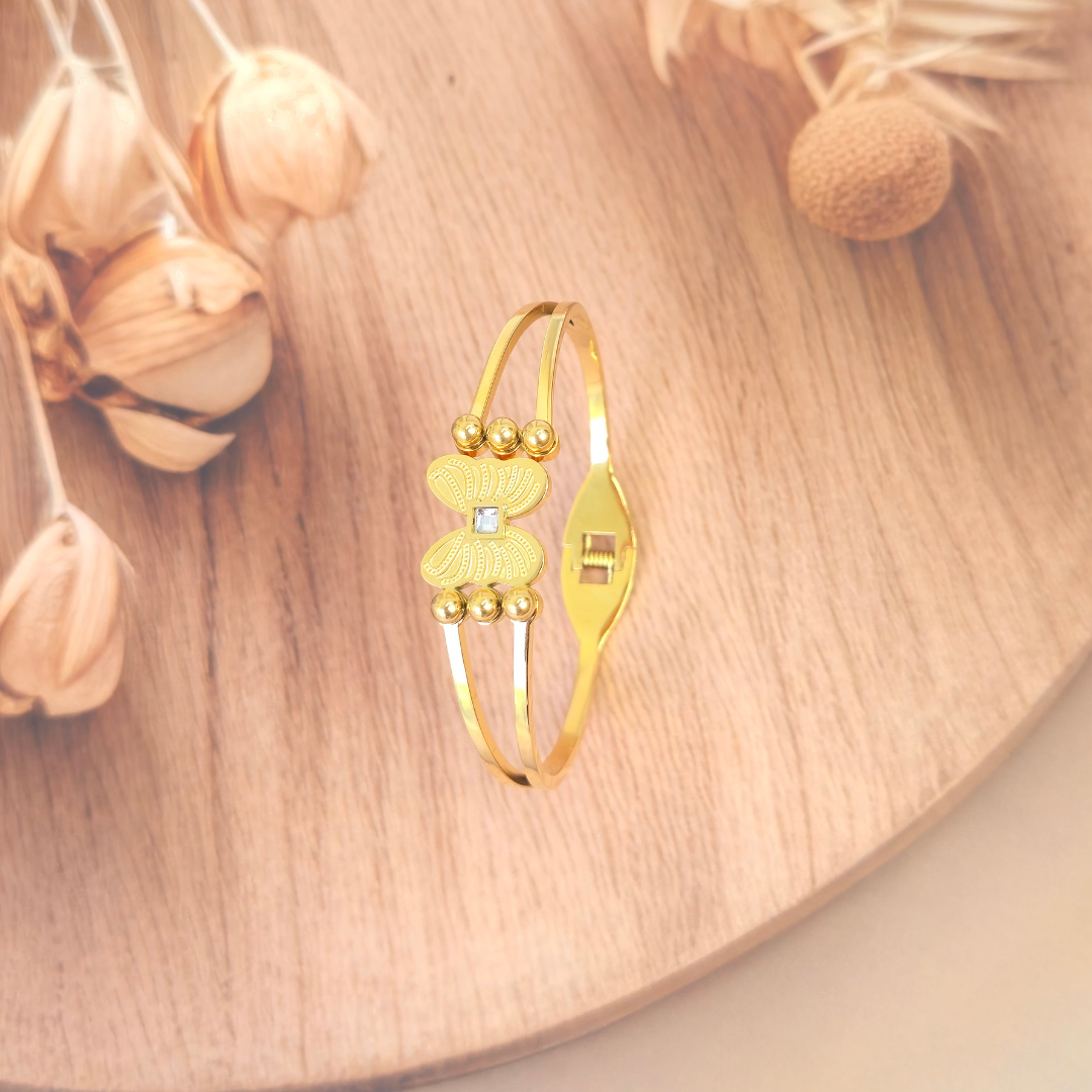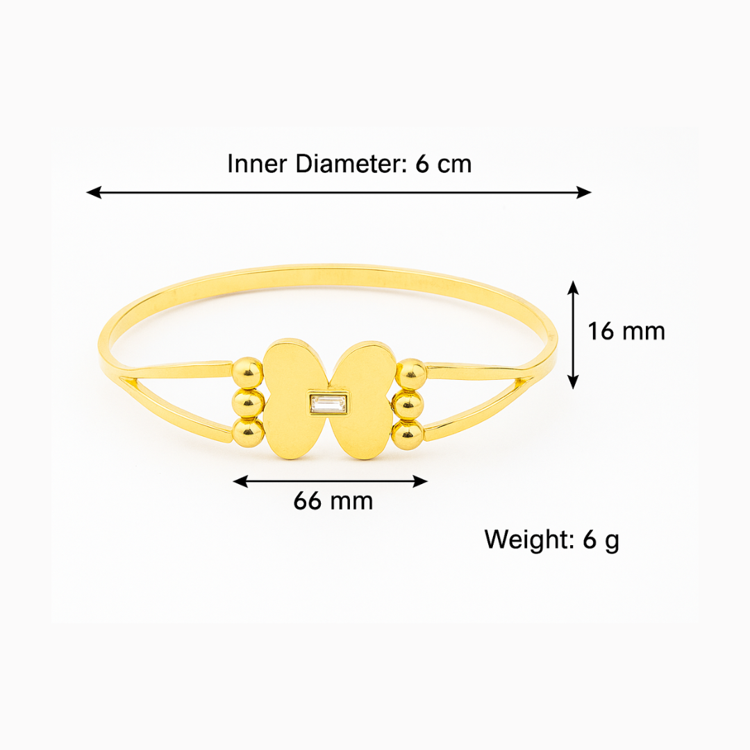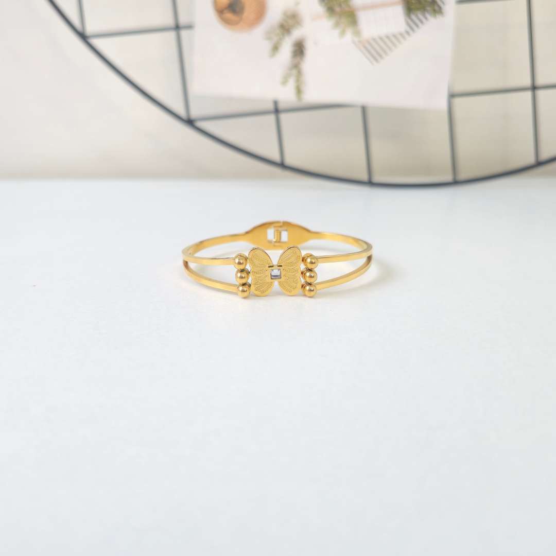 Delicately crafted to embody elegance and freedom, this butterfly bracelet by Shimmera features radiant 18K gold plating with a premium anti-tarnish finish for lasting brilliance. Its graceful design adds a touch of refined luxury to the wrist, making it a timeless accessory that effortlessly elevates both everyday style and special occasions.