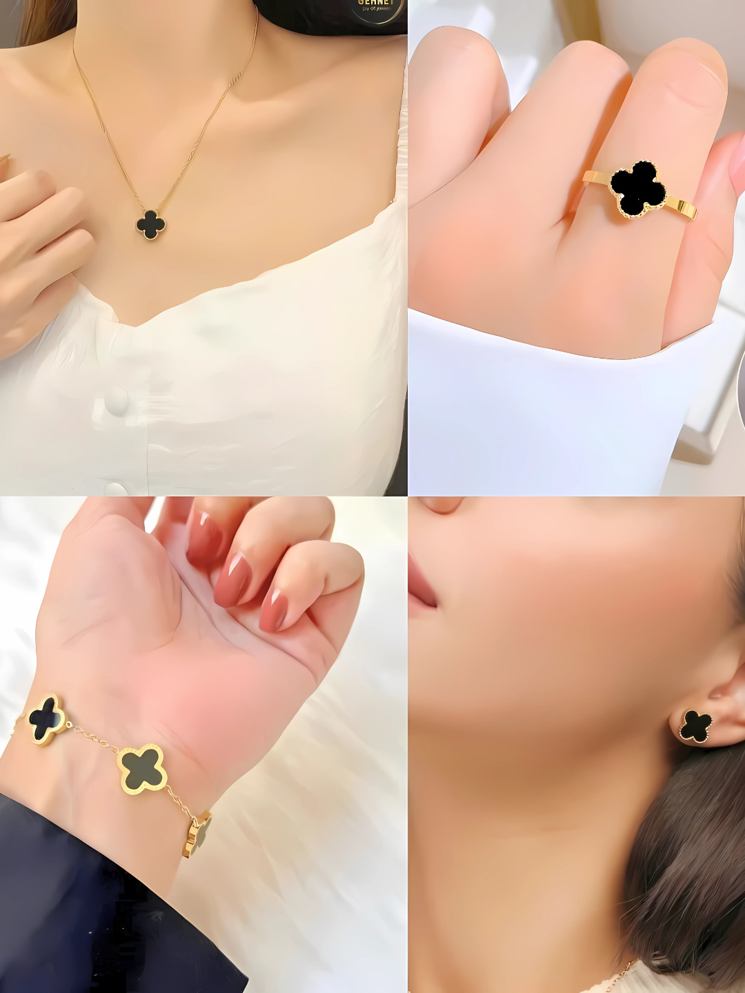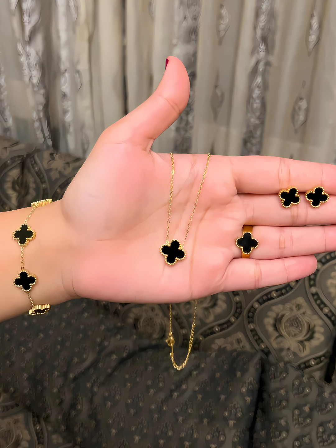 Anti tarnish 18k gold plated Clover jewellery set for women