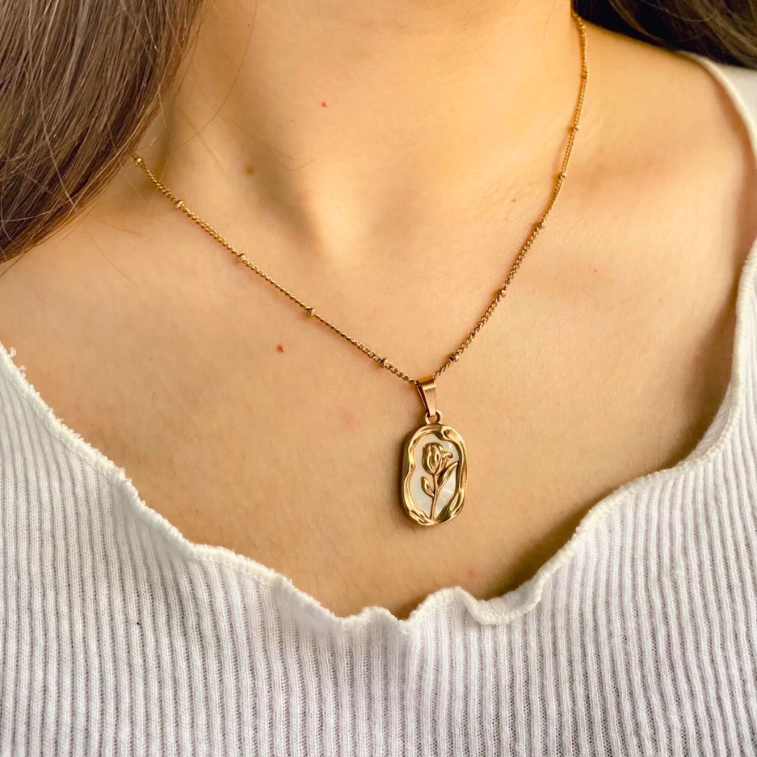 Floral Design Pendant: The pendant features a distinct floral motif (looks like a rose or a similar flower). Floral designs are timeless, elegant, and often symbolize beauty, growth, and love.