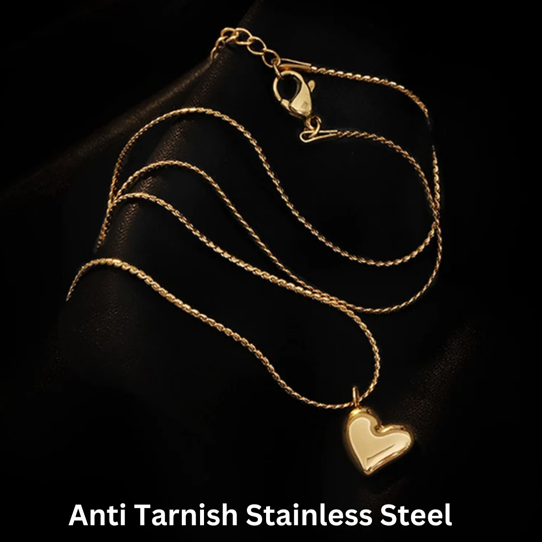 This necklace features a charming heart-shaped pendant that symbolizes love and affection. Made from durable stainless steel and coated with a layer of gold plating, it combines strength with elegance. The anti-tarnish treatment ensures that the necklace retains its shine and color over time, making it a great choice for everyday wear or special occasions.