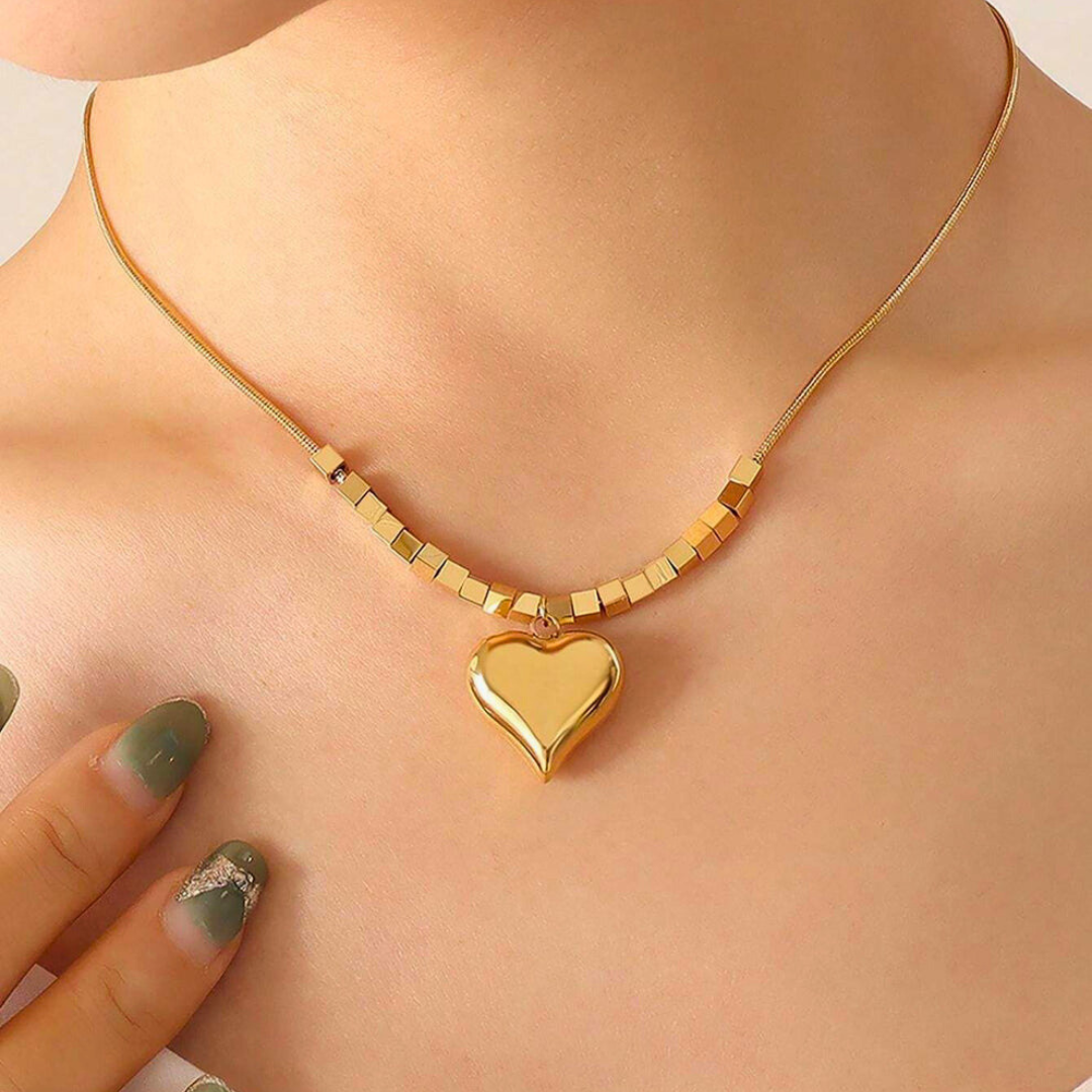 Heart pendant necklaces with square chains are a stylish and modern take on a classic piece of jewelry. Here’s a description and key features: Description: This heart pendant necklace features a beautifully crafted heart charm, symbolizing love and affection. The pendant is made from high-quality materials, often gold or gold-plated, giving it a luxurious shine. The necklace is complemented by a unique square chain, which adds a contemporary twist to the traditional round chain design. This combination makes it a versatile accessory that can be worn for various occasions, from casual outings to formal events.