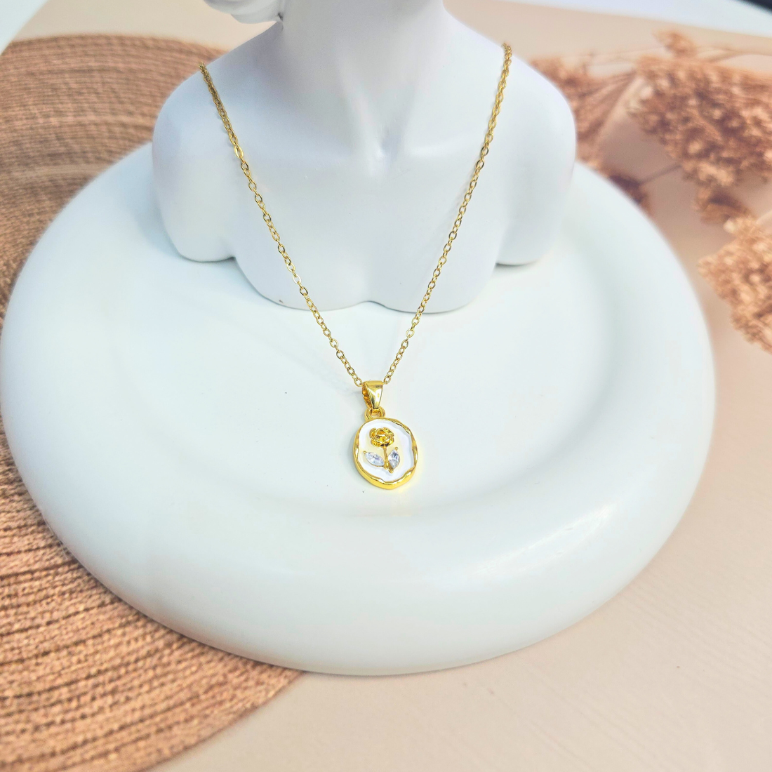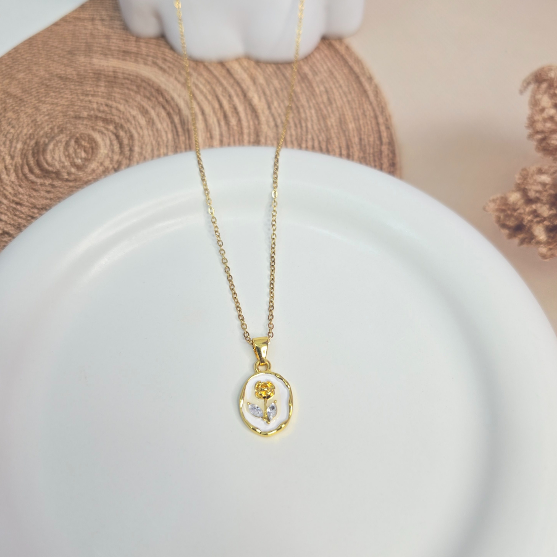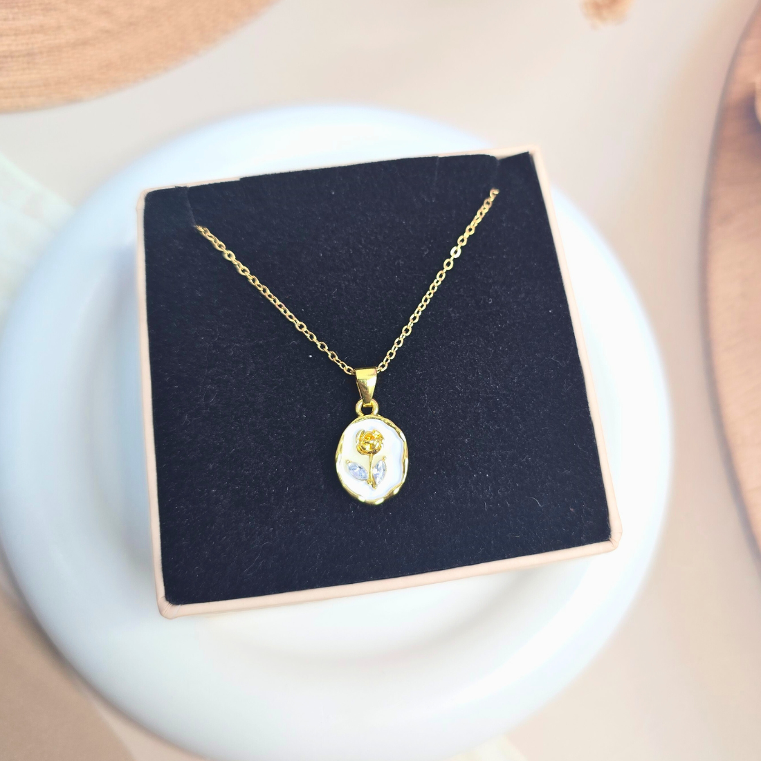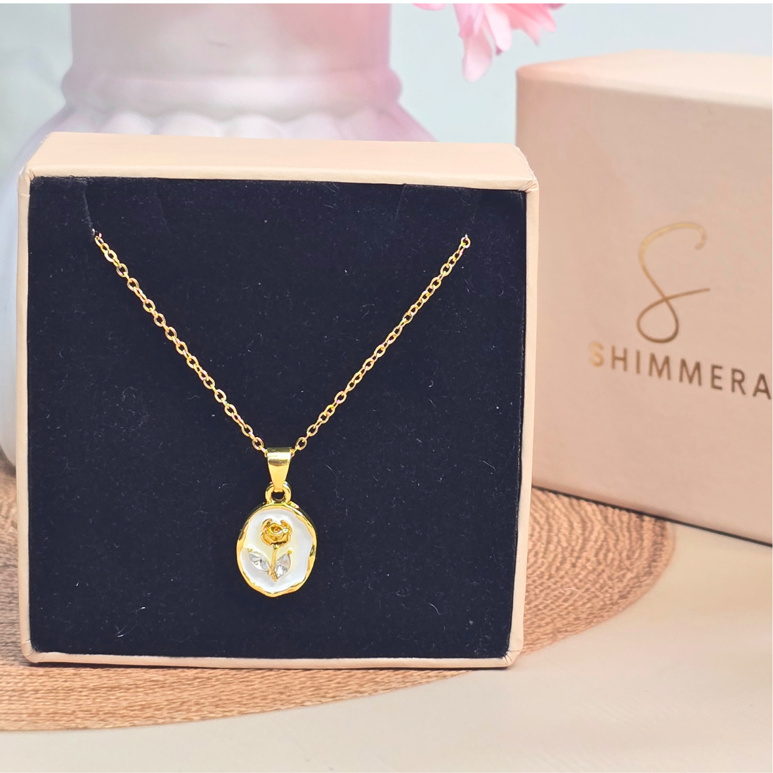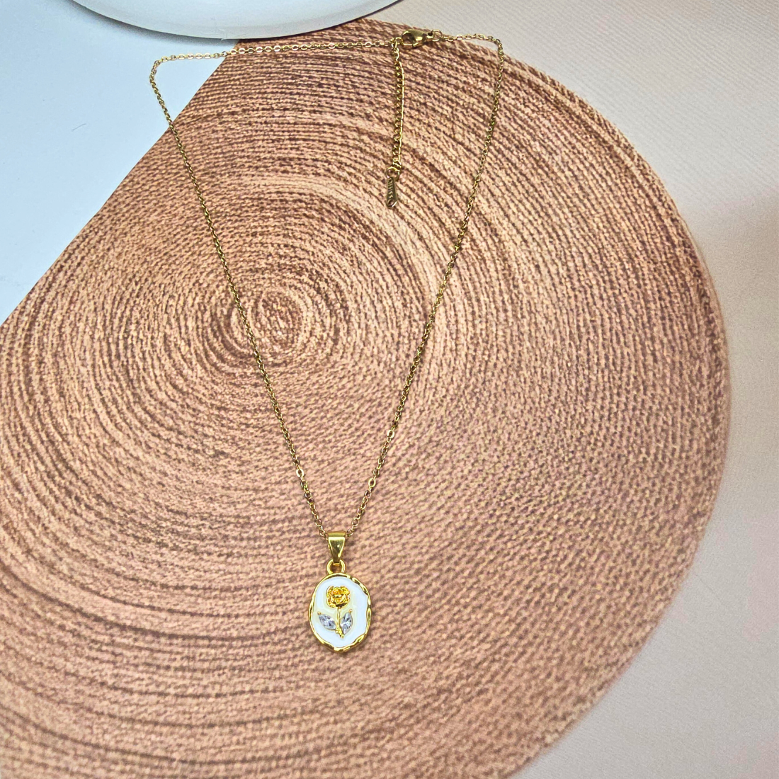 Premium Anti tarnish 18k Gold plated oval rose pendant with chain