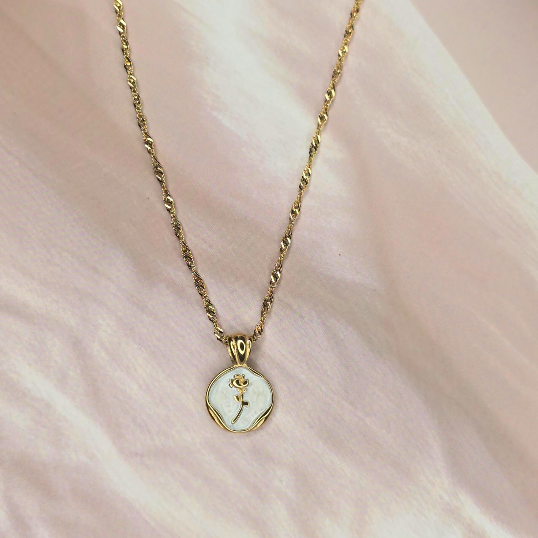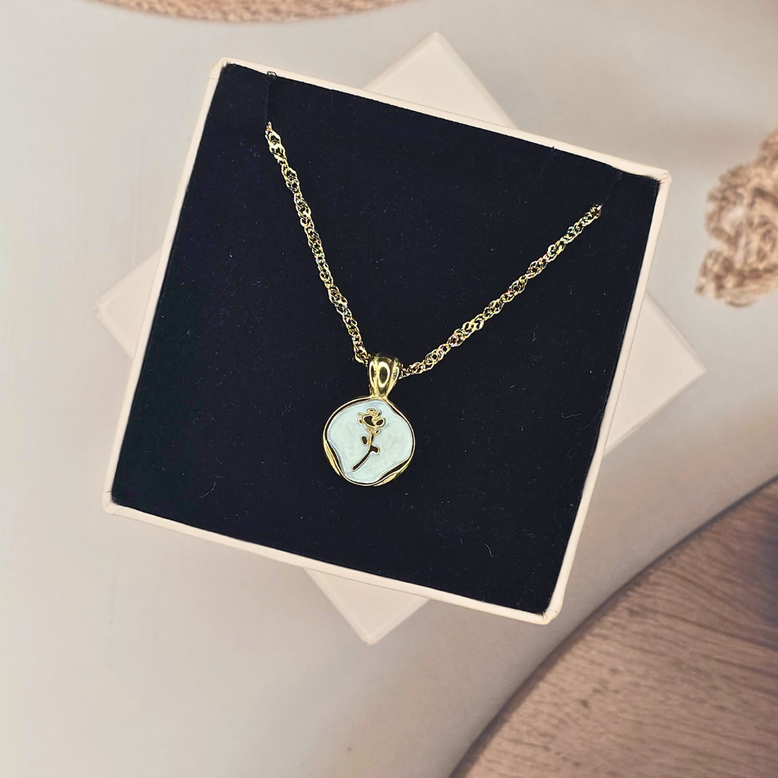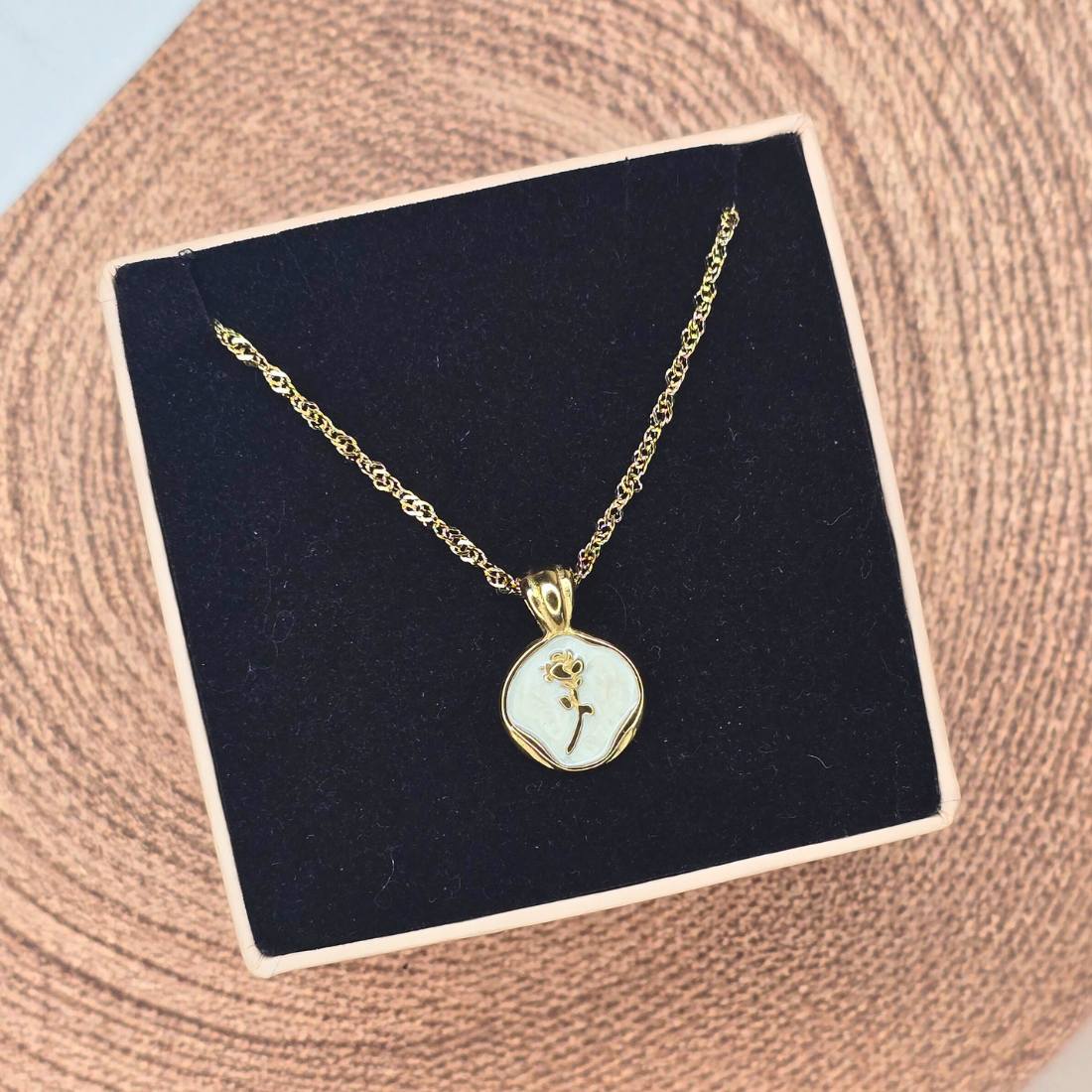 Anti tarnish 18k Gold plated Round rose pendant with chain