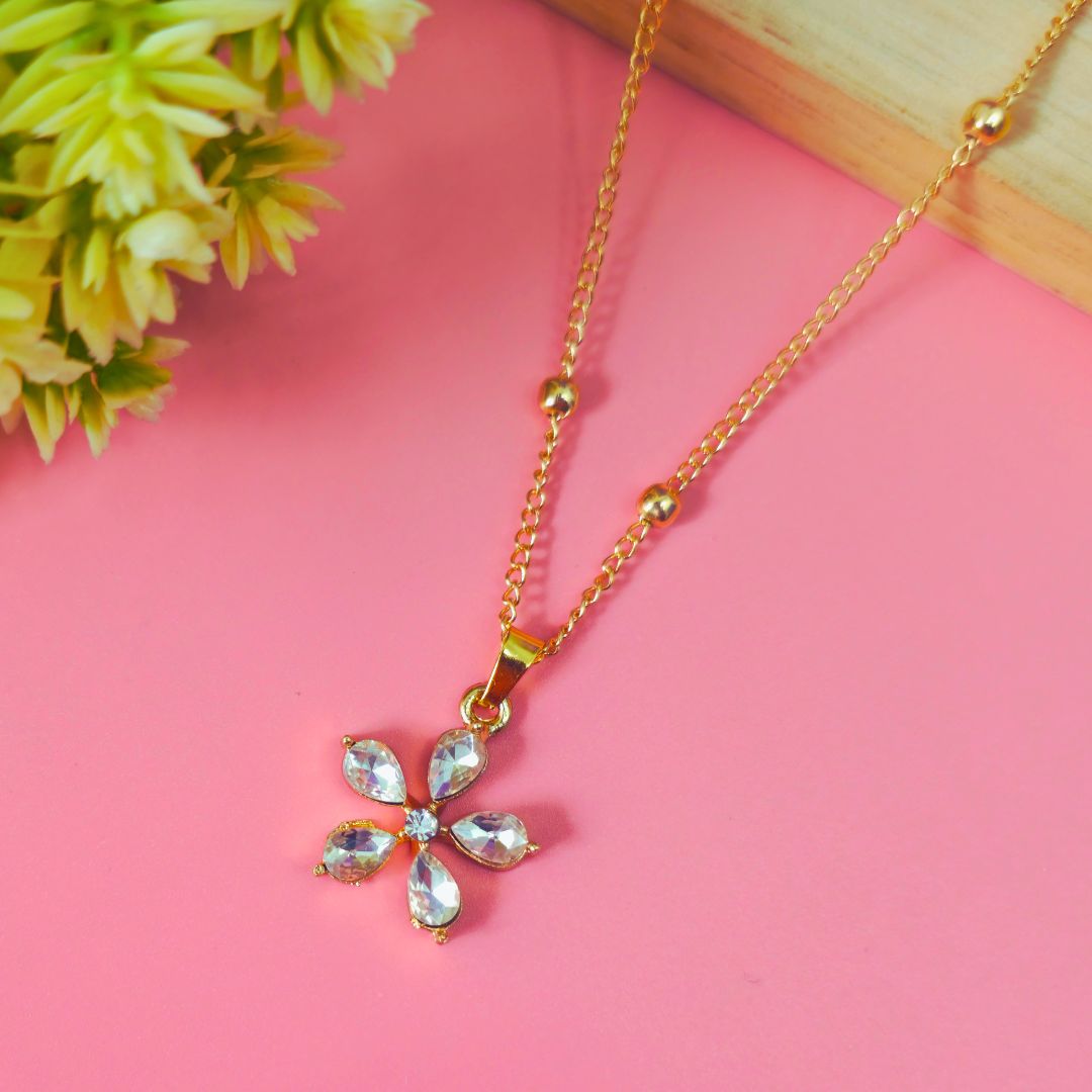 Five-Petal Flower Pendant: The centerpiece is a charming five-petal flower design. As seen in the image, each petal appears to be individually crafted, giving it a delicate and natural look.