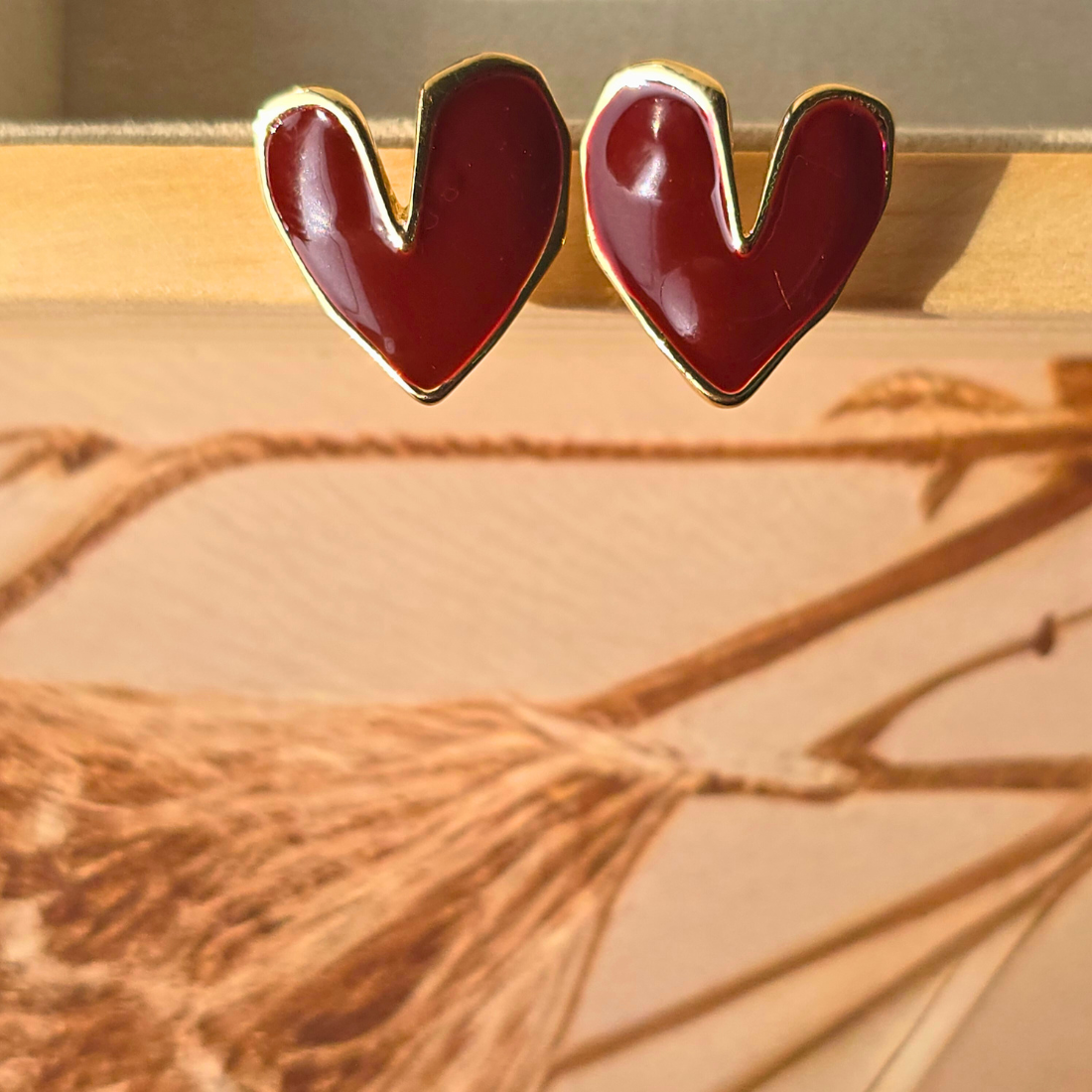 Description: These exquisite earrings feature a beautiful red heart design inspired by Korean fashion trends. The vibrant red color symbolizes love and passion, adding a touch of charm and elegance to any outfit.