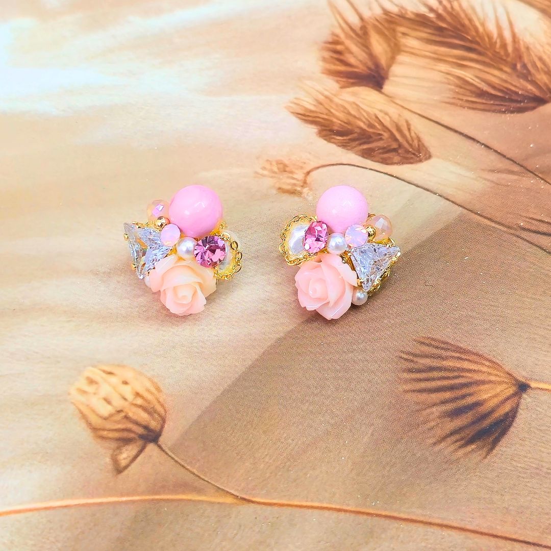 Sweet Pink Rose Cluster Design: The focal point of each earring is a beautifully crafted, delicate pink rose, creating a soft and romantic aesthetic. This floral motif adds a touch of natural beauty and femininity.