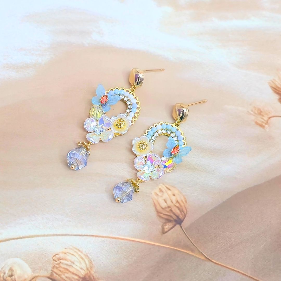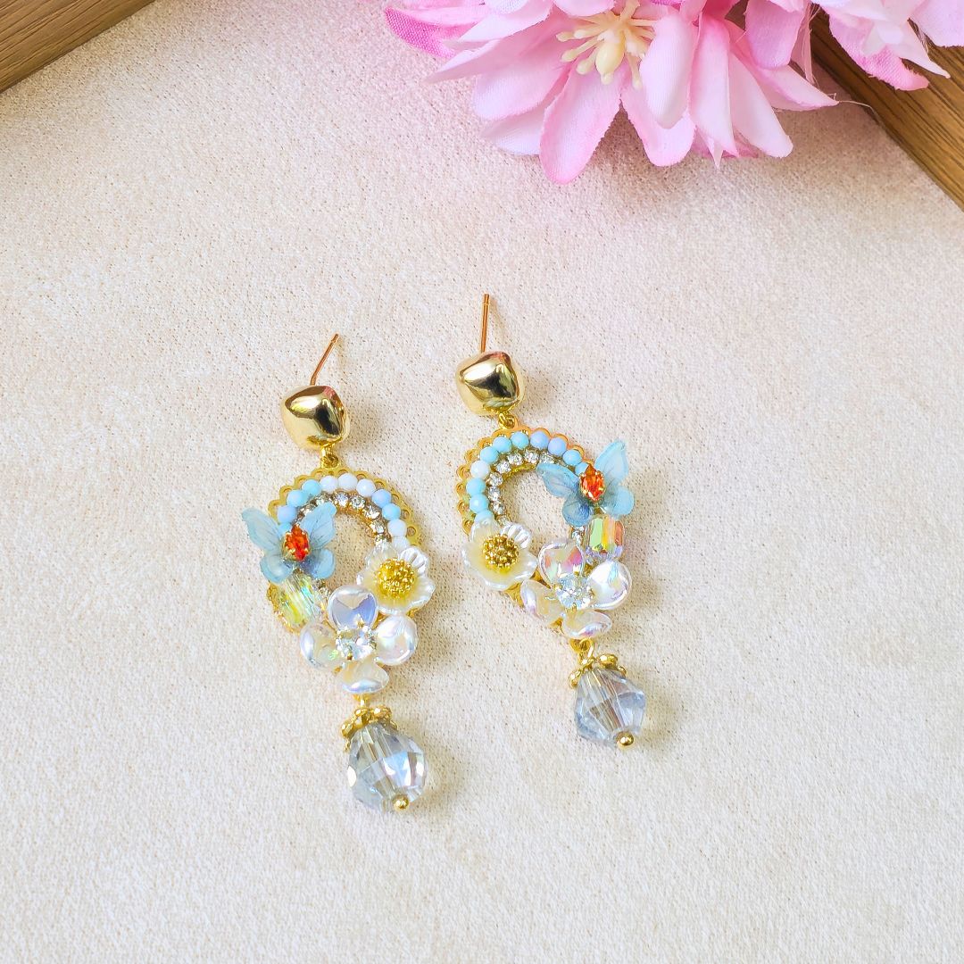 Lightweight Construction (Implied): Given the nature of the materials (beads, possibly acrylic or resin for flowers/butterflies), these earrings are likely designed to be lightweight and comfortable for extended wear.